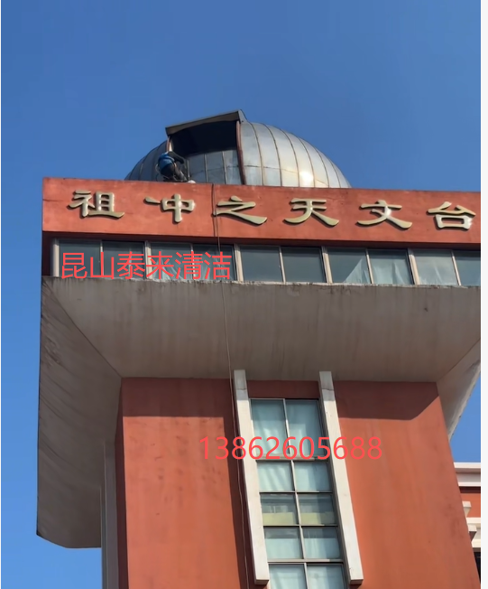 蓬朗小学天文台标识标牌高空清洁养护工程